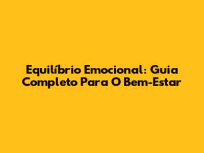 Equilíbrio Emocional: Guia Completo Para O Bem-Estar